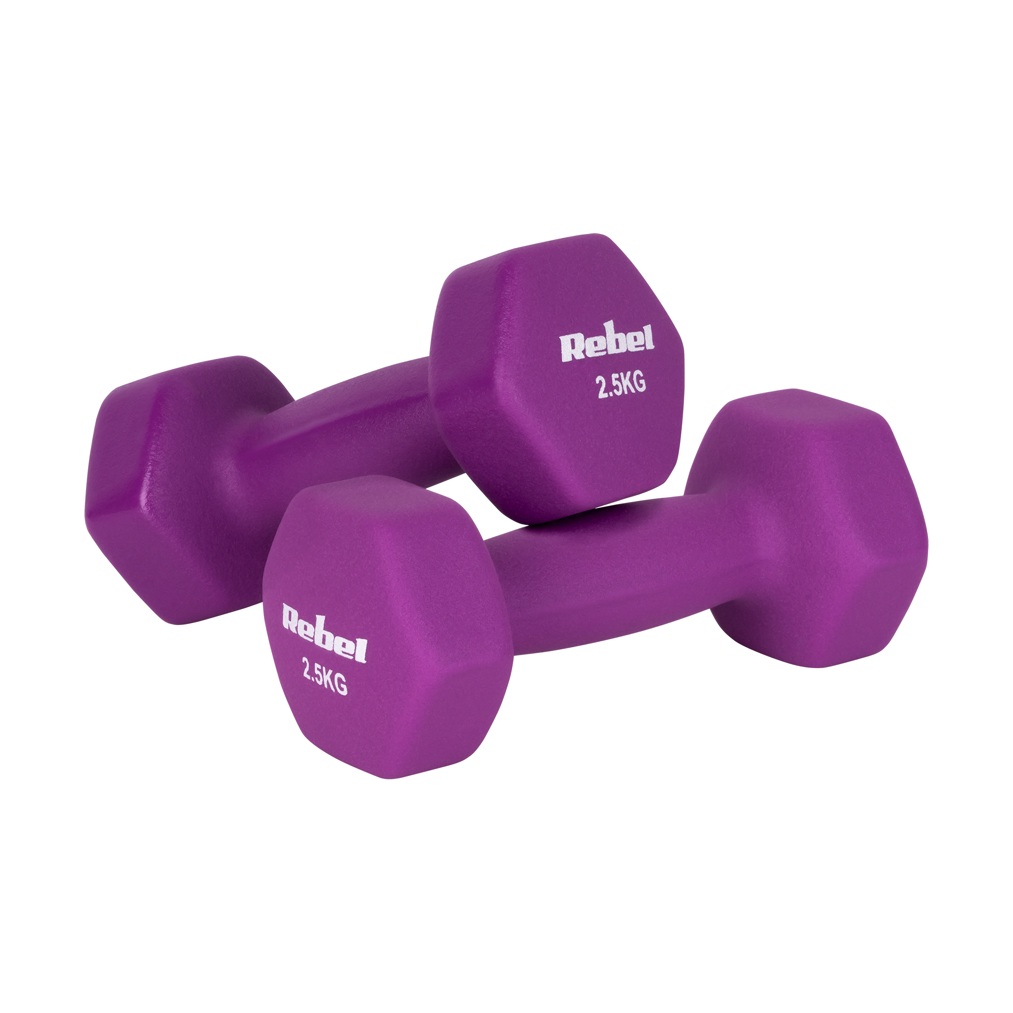 Gantere HEX 2x 2,5 kg din fonta si neopren REBEL ACTIVE