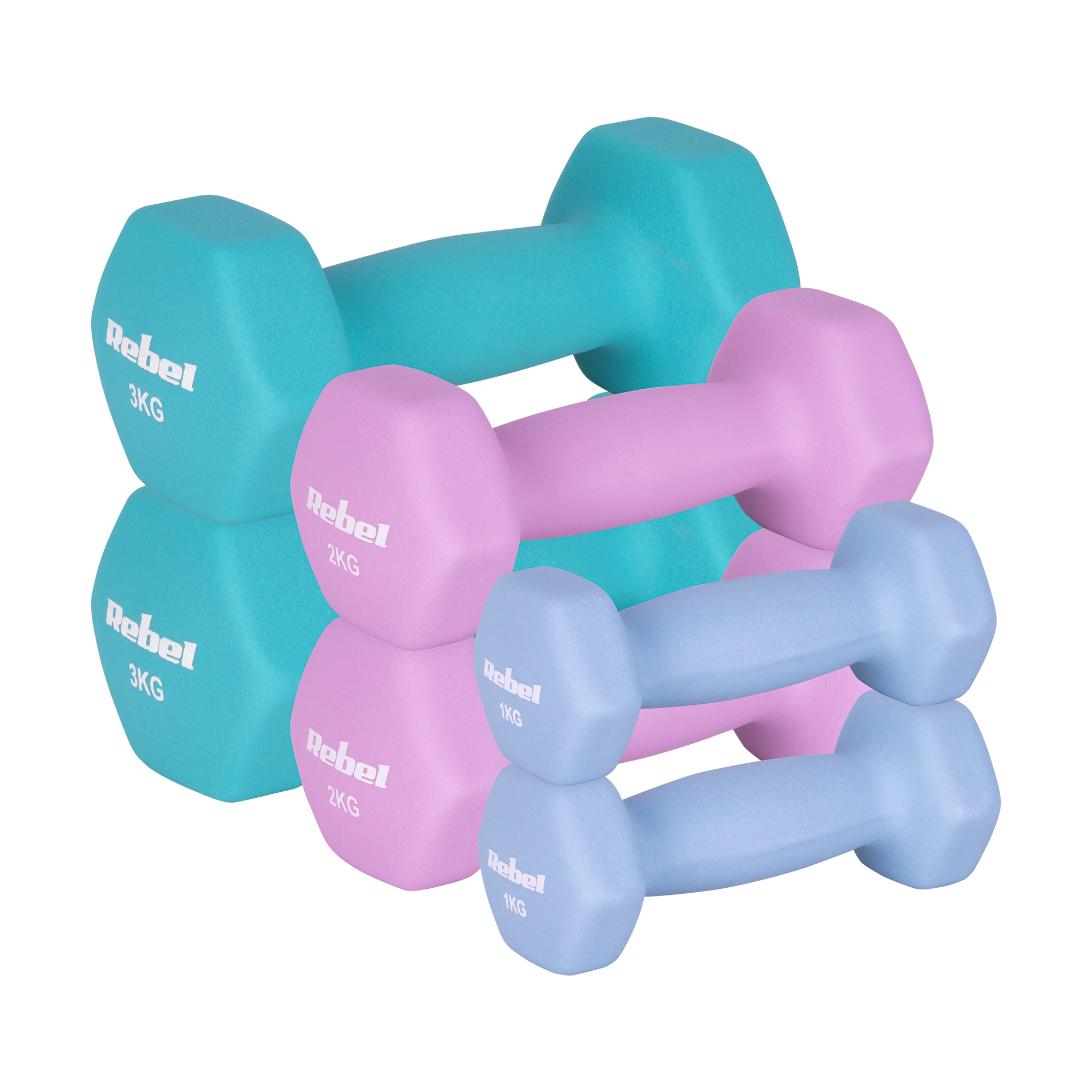 Set gantere din fonta invelis neopren HEX 12 kg REBEL ACTIVE