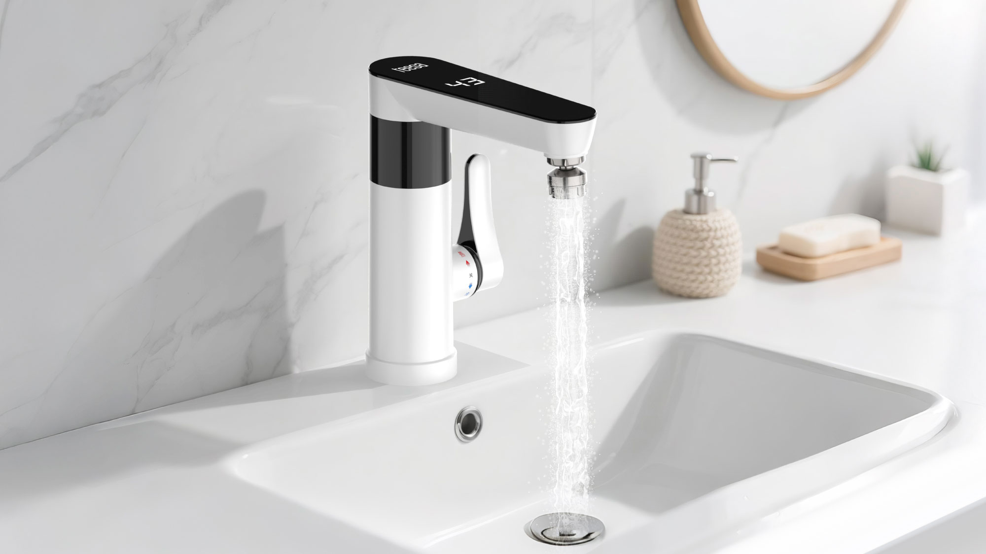 Puterea de 3000W garanteaza incalzirea instantanee a apei, in timp ce un debit de pana la 2 l/min asigura o utilizare confortabila in timpul activitatilor zilnice. Dispozitivul functioneaza stabil la presiuni cuprinse intre 0,04 si 0,6 MPa, permitand o functionare eficienta atat in locuinte, cat si in locuri cu presiune mai putin stabila.