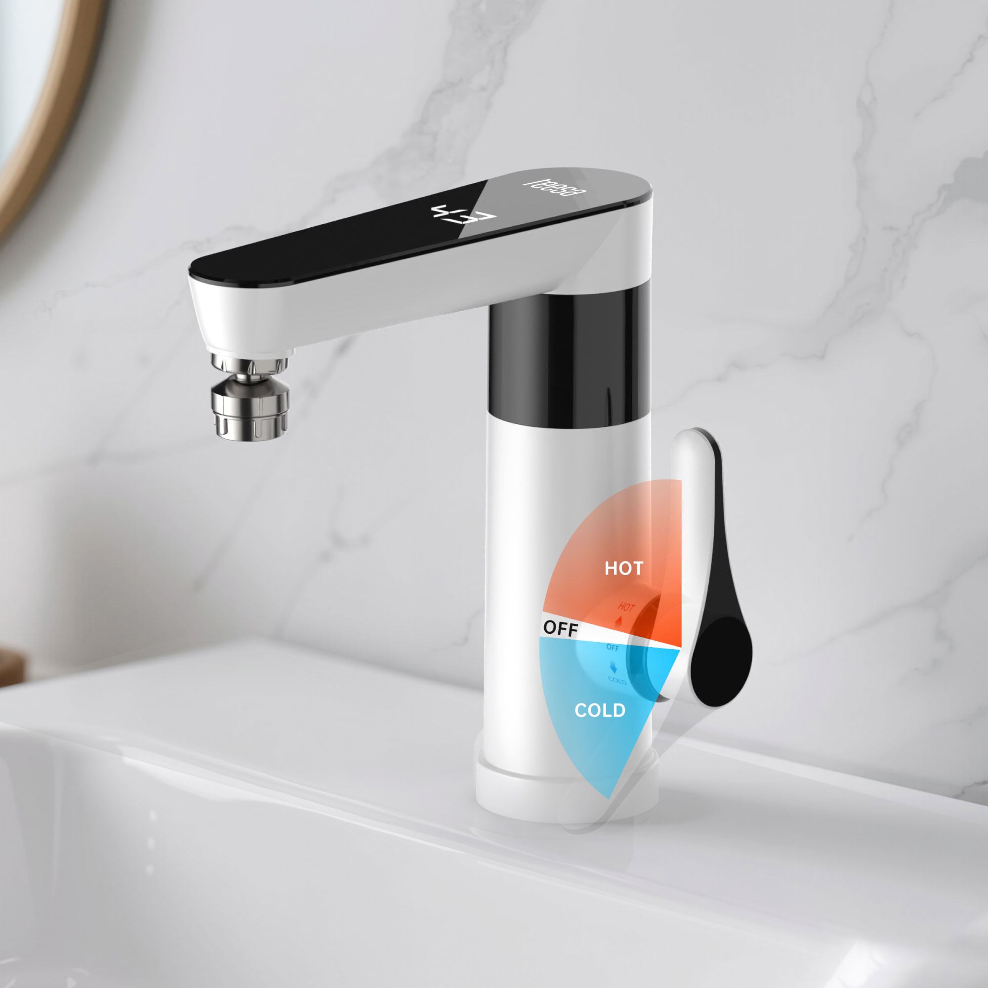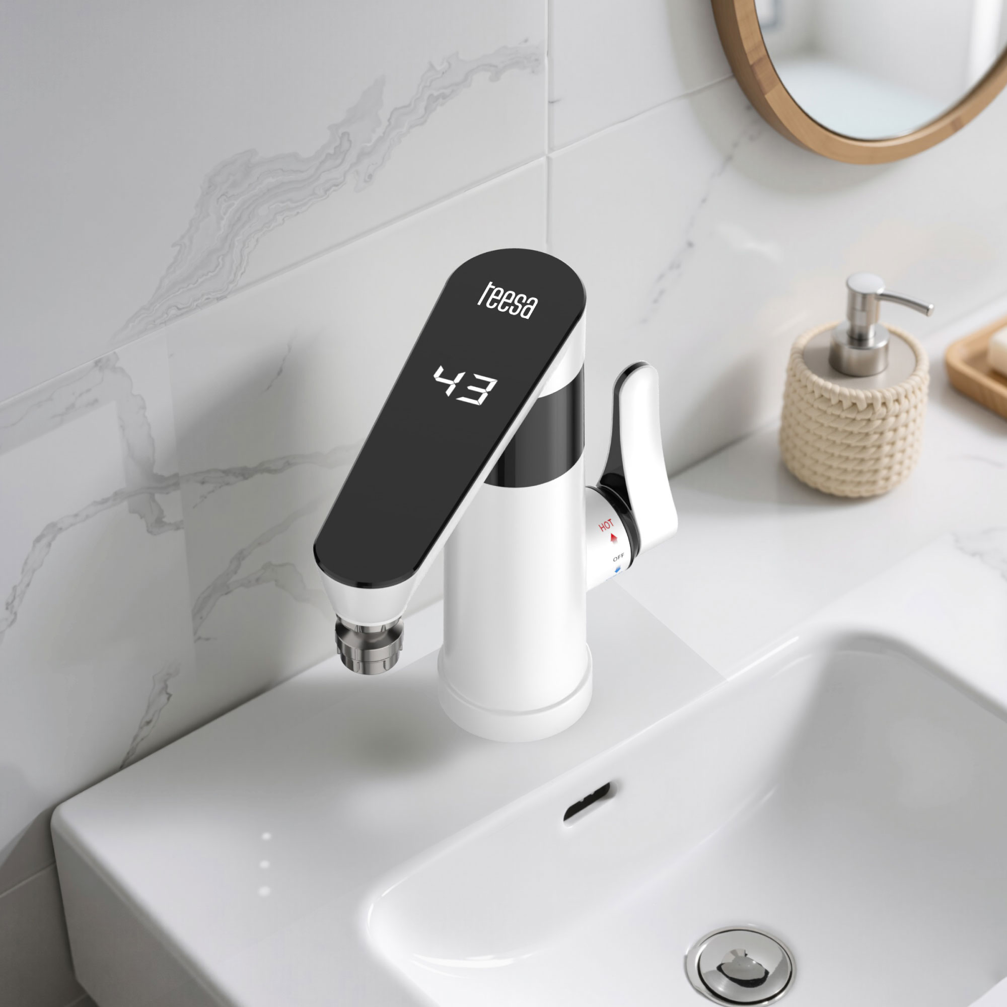 Robinetul instant Teesa este echipat cu un comutator convenabil pentru controlul debitului de apa rece si calda, ceea ce face ca setarea temperaturii optime sa fie rapida si intuitiva. Afisajul LED de pe robinet arata temperatura curenta a apei, crescand confortul si siguranta in utilizare, protejand in acelasi timp impotriva arsurilor accidentale.