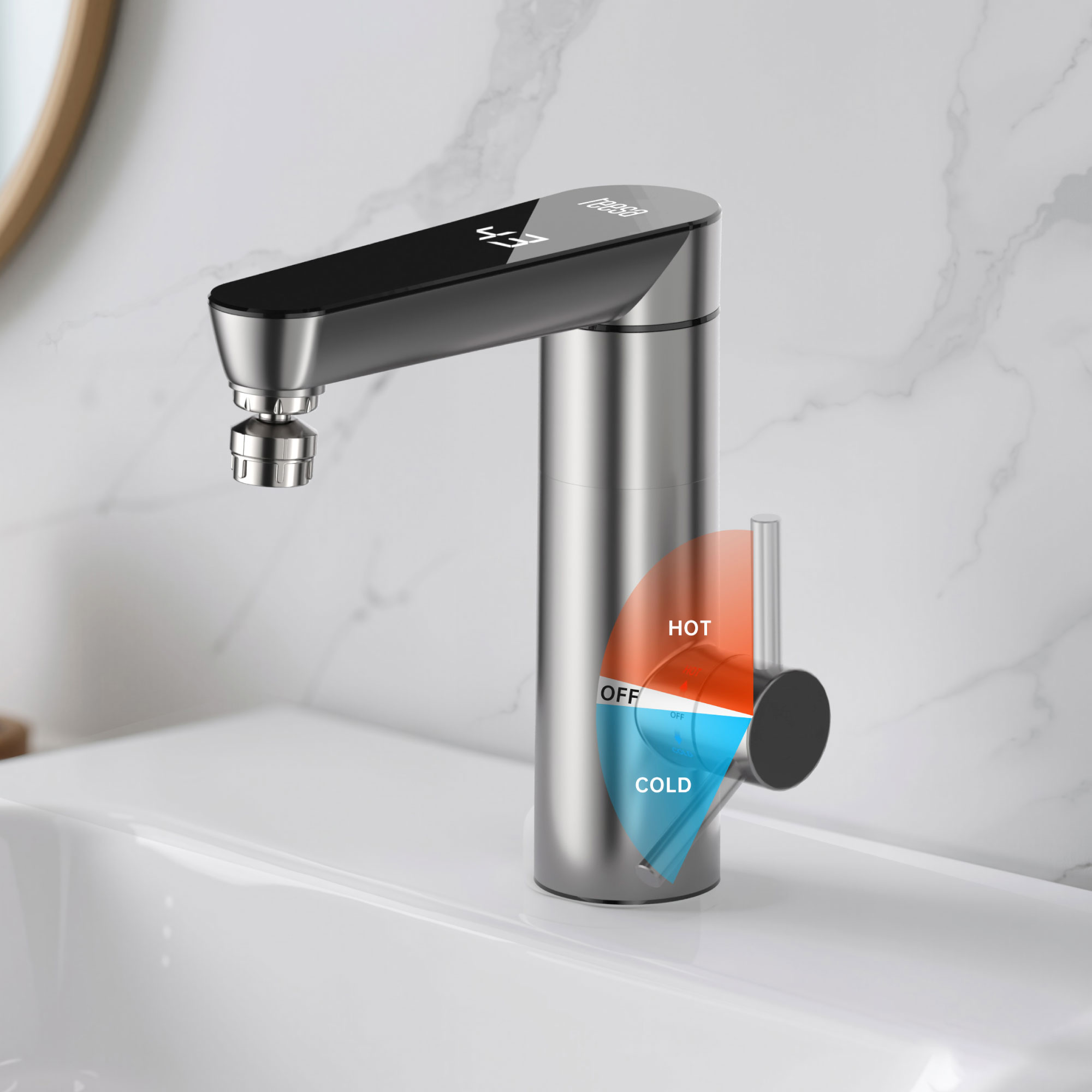 Robinetul instant Teesa care se monteaza direct pe blat sau chiuveta, este o solutie practica atunci cand ai nevoie imediat de apa calda, fara a astepta sau a utiliza un incalzitor de apa. Designul sau subtire, cu un finisaj elegant si versatil, este perfect pentru bucatarie, baie, atelier sau casa de vara, asigurand o utilizare zilnica confortabila.