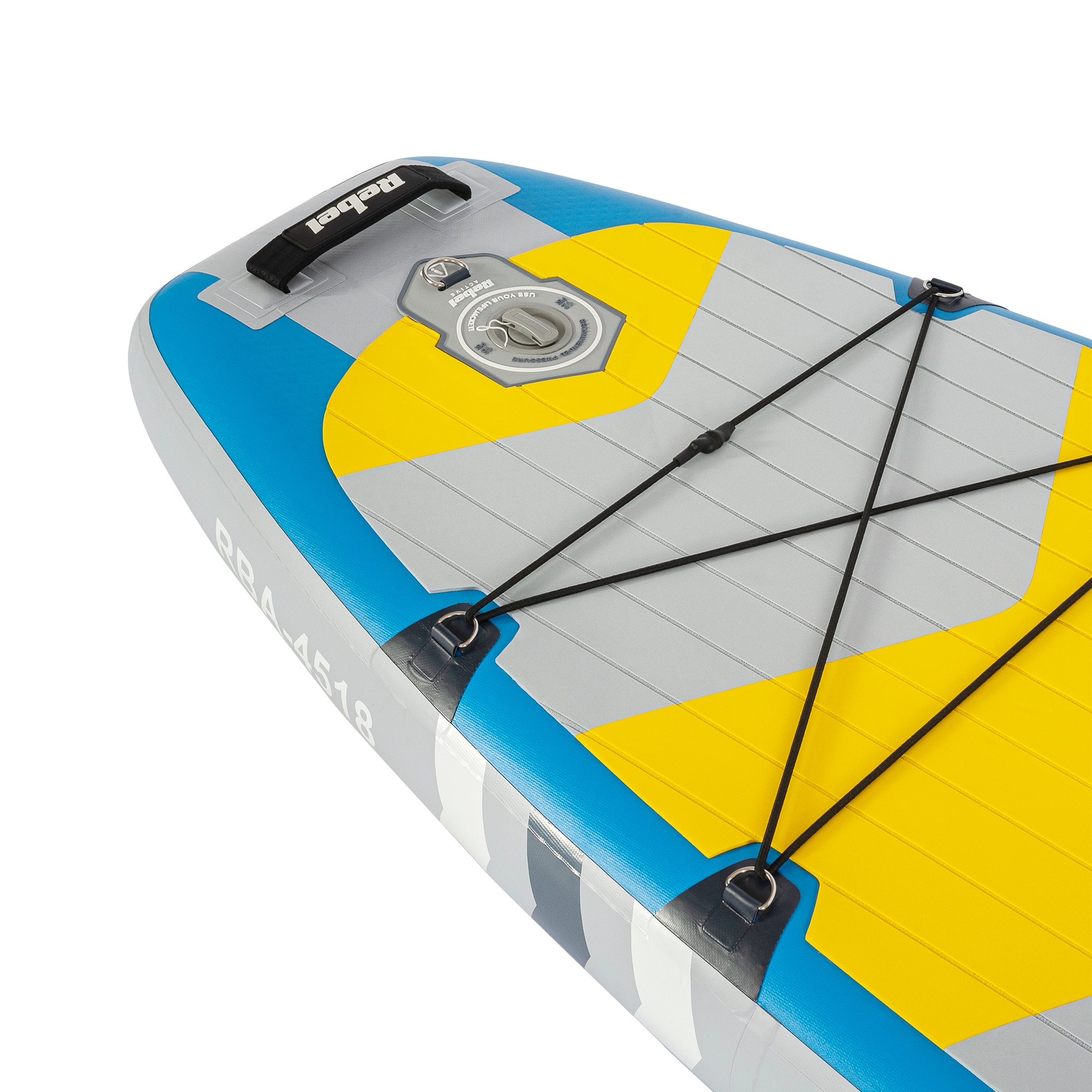 O curea centrala din fibra de carbon este centrul placii de SUP RBA-4518. Aceasta ofera rigiditate si rezistenta exceptionale, ramanand in acelasi timp usoara, impiedicand placa sa se lase sub greutatea utilizatorului sau a bagajelor. Acest lucru garanteaza stabilitatea in timpul vaslitului si un control imbunatatit, indiferent de conditiile apei.