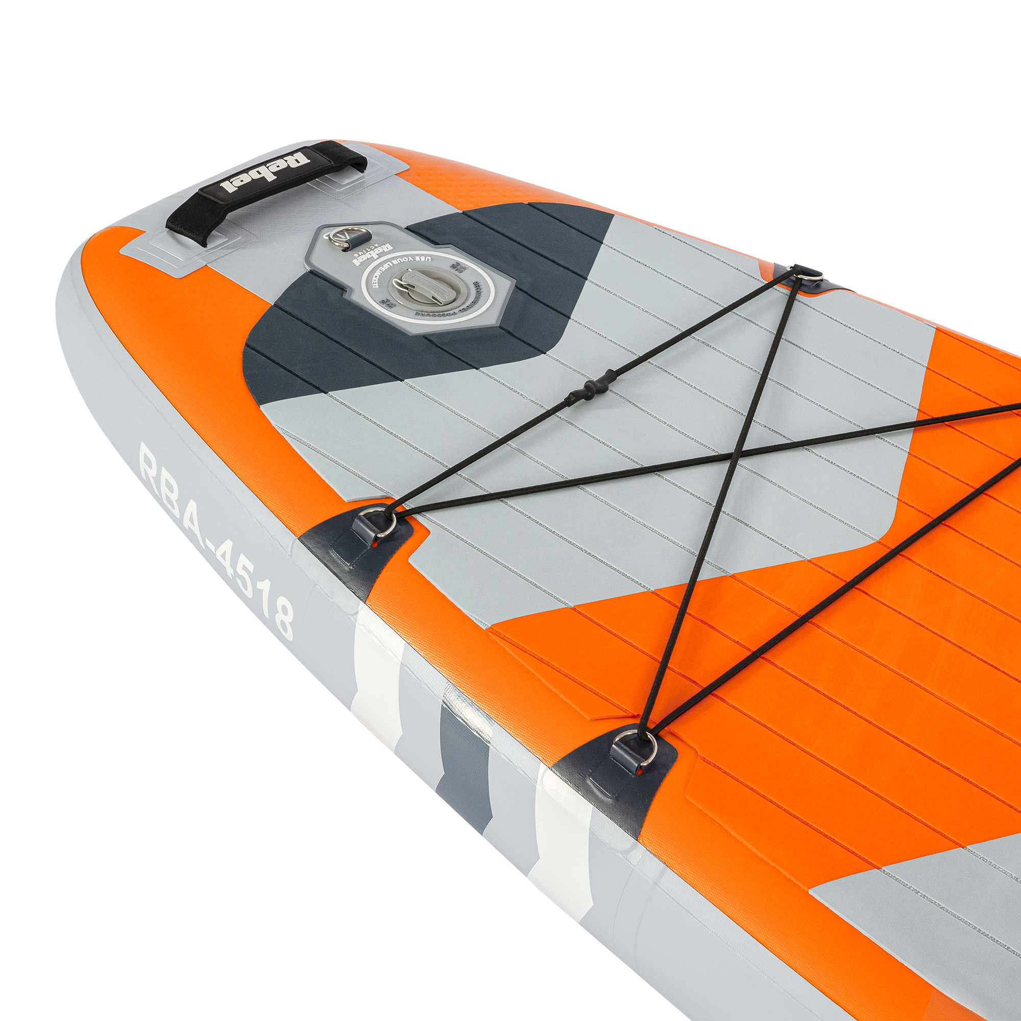 O curea centrala din fibra de carbon este centrul placii de SUP RBA-4518. Aceasta ofera rigiditate si rezistenta exceptionale, ramanand in acelasi timp usoara, impiedicand placa sa se lase sub greutatea utilizatorului sau a bagajelor. Acest lucru garanteaza stabilitatea in timpul vaslitului si un control imbunatatit, indiferent de conditiile apei.