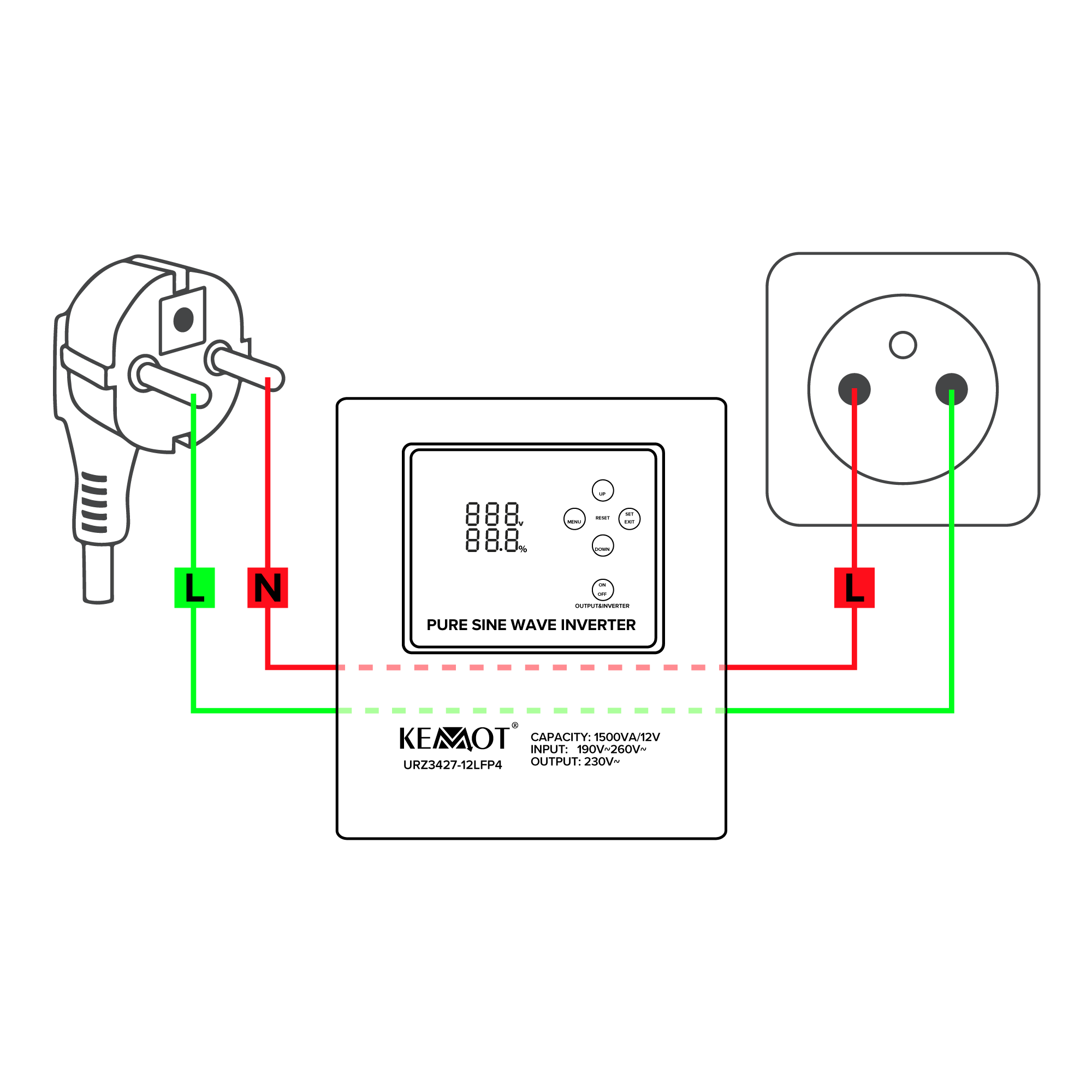 UPS-urile KEMOT functioneaza cu dispozitive echipate cu detectare de faza, cum ar fi unele modele de centrale pe gaz. Faza de la dispozitivul nostru este pozitionata in acelasi loc, la priza de iesire, indiferent daca UPS-ul este alimentat de o priza de perete sau de o baterie.